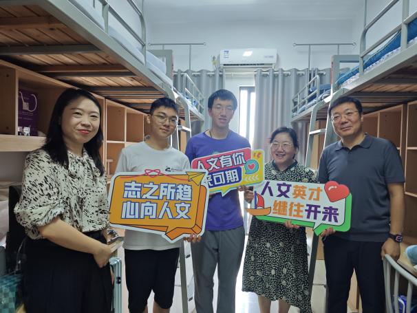 报到首日,十三水在线 党委书记楚广兴、院长高志宏带领十三水在线 领导班子成员深入两校区迎新现场,与新生、家长、志愿者亲切交谈,热烈欢迎大家加入“人文大家庭”,勉励同学们在新的学习阶段继续努力、再接再厉。报到期间,恰逢新同学生日,十三水在线 提前准备了生日蛋糕,楚广兴、高志宏在新生宿舍共同庆生、赠送书籍,气氛温馨融洽,让离家求学的新生感受到了来自十三水在线 的温暖与关怀。