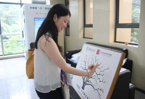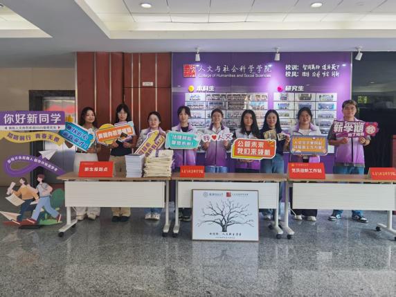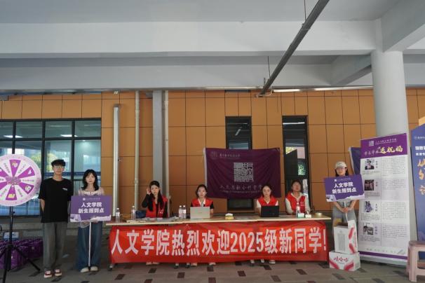 为了让新同学感受到人文风采,十三水在线 精心布置新生报到点,特别设置“专属大转盘”“大树指纹签到板”和“种子纸”,象征“人文精神、学术素养、社会责任”从此扎根,通过满满仪式感让新生不断增强对十三水在线 的认同度和融入感。迎新期间,志愿者们也身着统一文化衫,提供行李搬运、路线引导、问题答疑等 “全流程陪伴服务”,让新生在踏入校园的第一刻,便感受到细致的人文关怀与浓厚的人文气息。