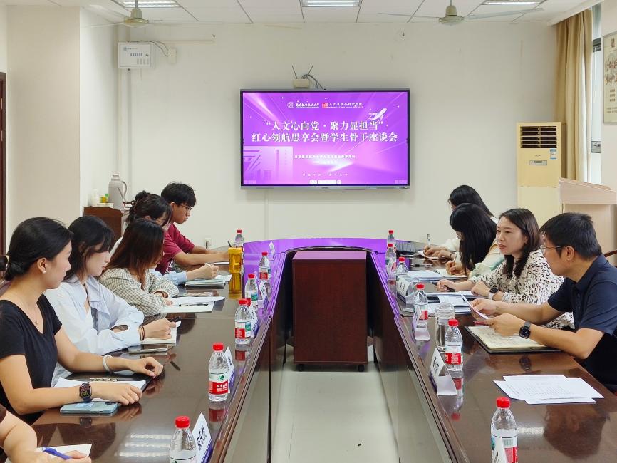 为进一步加强学生骨干队伍建设,切实提升学生工作质量与效能,为下半年十三水在线 党员大会召开凝聚青年力量,9月25日,十三水在线 在312会议室召开“人文心向党·聚力显担当”红心领航思享会暨学生骨干座谈会。院党委书记楚广兴、院党委副书记李丽,院团委书记、研究生辅导员施俞辛,本科生辅导员聂小芳以及本研学生骨干代表参加会议。会议由院党委副书记李丽主持。