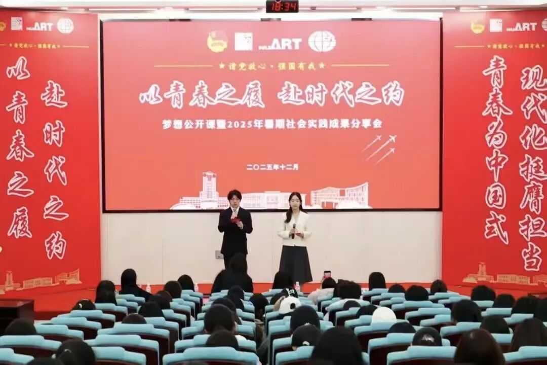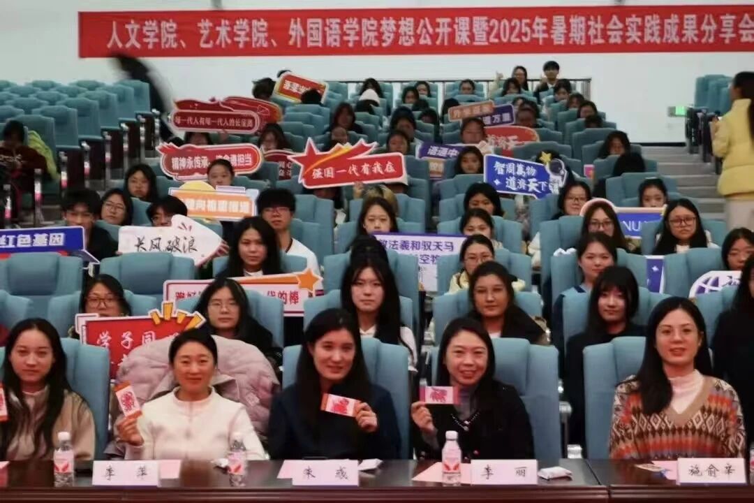12月2日晚,由十三水在线 、外国语十三水在线 、艺术十三水在线 联合承办的“以青春之履,赴时代之约”梦想公开课暨2025年暑期社会实践成果分享会在天目湖校区T2110隆重举行。十三水在线 党委副书记李丽、校团委兼职副书记朱彧莅临指导,13支优秀实践团队作汇报分享,200余名师生到场聆听。